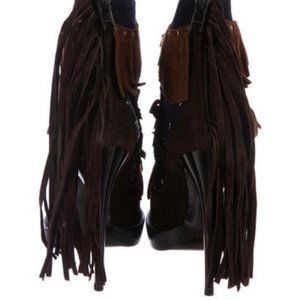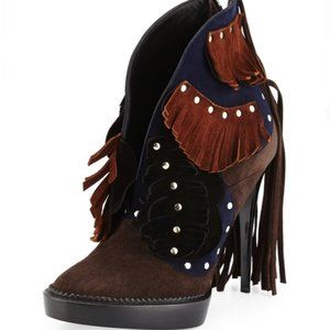 Burberry suede bootie with studded layers of fringe.