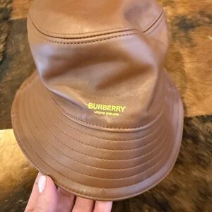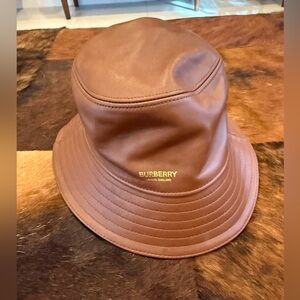 BURBERRY Logo Detail Leather Bucket Hat In Brown