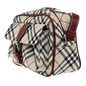 BURBERRY Logo Nova Check Shoulder Bag Canvas Leather Red Brown Japan 65EF694