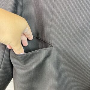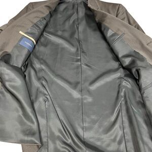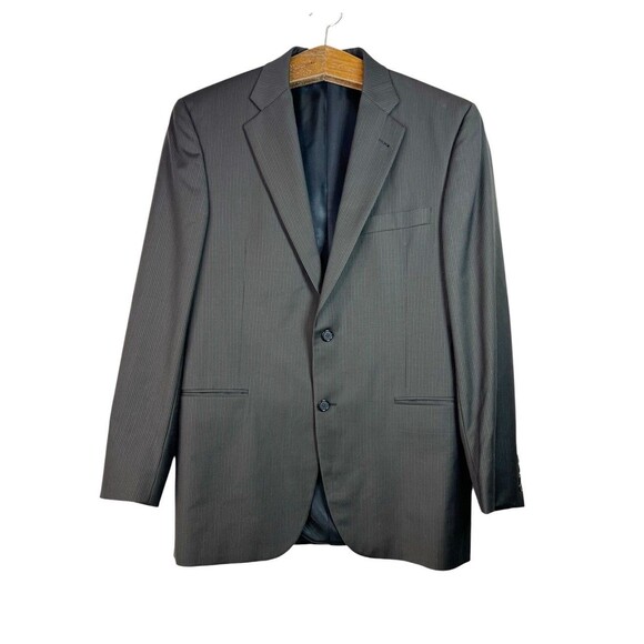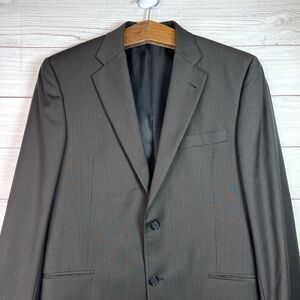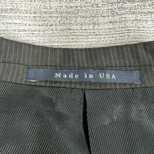 In great condition. Brown with striped pattern. Two button closure. Front pockets and inner pockets. 100% wool. Made in USA. Refer to pictures for measurements. From smoke-free/pet-free home.