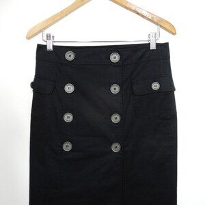 BURBERRY London Button Down SKIRT US Size 4 Black Cotton Knee Length Slits NEW