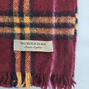 BURBERRY London Classic Nova Check Knit 100% Cashmere Maroon Rectangle SCARF