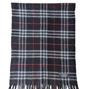 Burberry London Classic Nova Check Knit 100% Lambs Wool Fringe Black Scarf