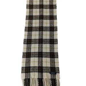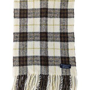 Burberry London Classic Nova Check Knit Wool Fringe Neck Warmer White Scarf