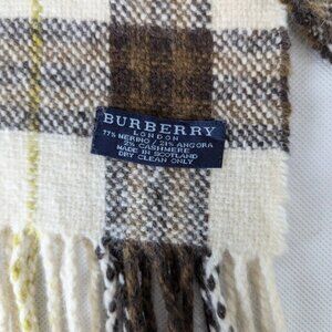 BURBERRY London Classic Nova Check Knit Wool Fringe Neck Warmer White SCARF