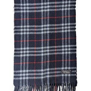 Burberry London Vintage Classic Nova Check Knit 100% Lambs Wool Black Scarf