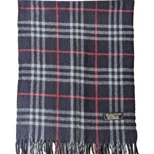 Burberry London Vintage Classic Nova Check Knit 100% Lambs Wool Black Scarf