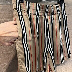 BURBERRY MARSETT ICON STRIPED SILK SHORTS Size 12