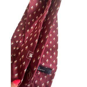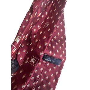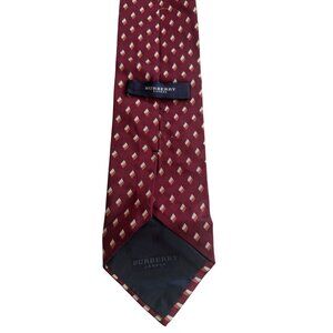 Elevate your style with this elegant Burberry tie, featuring a luxurious 100% silk composition and a sophisticated burgundy pattern. Perfect for formal occasions or adding a touch of class to your everyday attire. A timeless accessory for the modern gentleman.