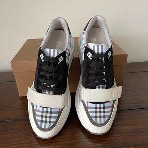 BURBERRY Men's Ramsey Blue Check Low-Top leather, suede, cloth Trainer Sneakers