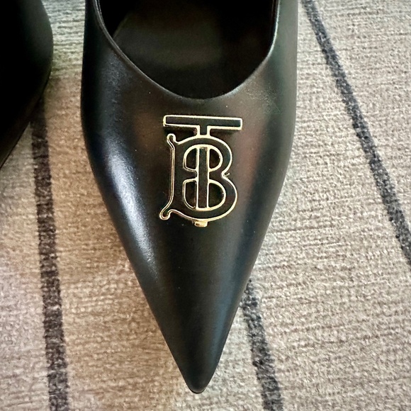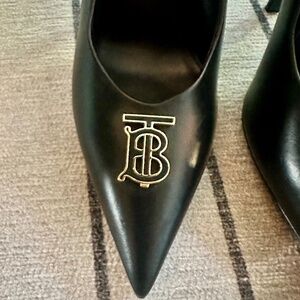 Absolutely STUNNING black leather pumps with the gold Burberry emblem logo. These are gorgeous and very hard to come by - especially at this price!! Size 39 and brand new without box - has some sticker residue and at most tried on at a store. They are insanely good!!