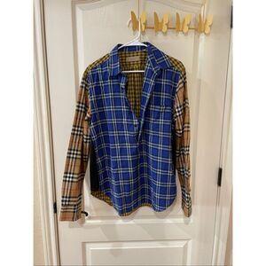 BURBERRY Multicolor Check Long Sleeve Cotton Shirt size large