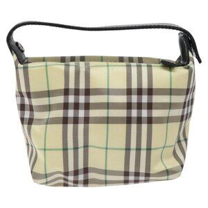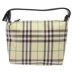 BURBERRY Nova Check Accessory Pouch Nylon Green Silver Auth