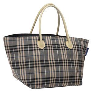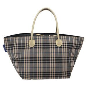 BURBERRY Nova Check Blue Label Hand Bag Canvas Navy Auth