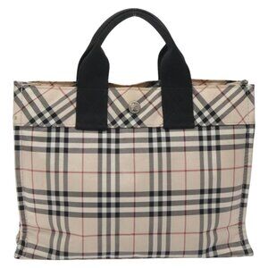 BURBERRY Nova Check Blue Label Hand Bag Nylon Beige Silver Auth