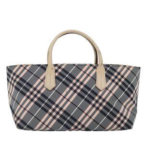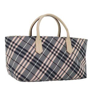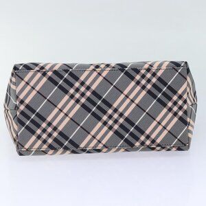 BURBERRY Nova Check Blue Label Hand Bag Nylon Gray Pink Auth