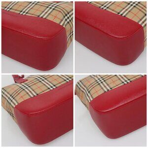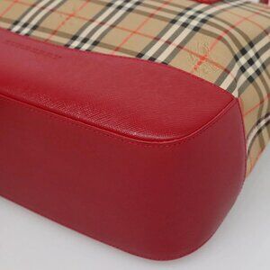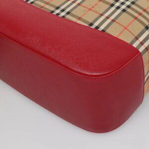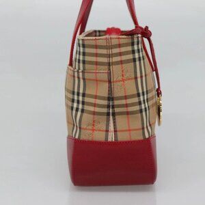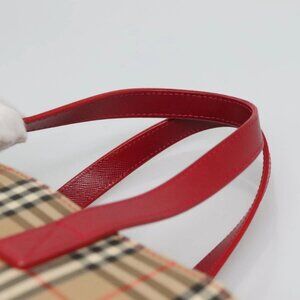 BURBERRY Nova Check Hand Bag Canvas Beige Gold Auth 120804