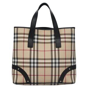 BURBERRY Nova Check Hand Bag PVC Beige Black Silver Auth 113312