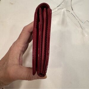 Very good condition. Women’s bifold Burberry Nova Check red patent leather long wallet. Snap close, Credit card holders, zip compartment, bill section.