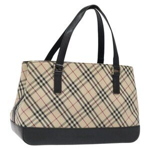 BURBERRY Nova Check Shoulder Bag Canvas Beige Silver Auth 123462