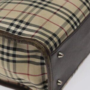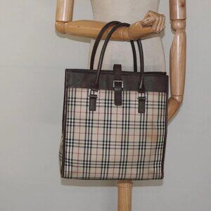 BURBERRY Nova Check Tote Bag Canvas Beige Silver Auth 118228