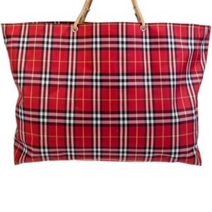 Burberry, London, printed nylon tote bag red nylon plaid, print silver tone hardware