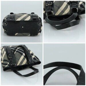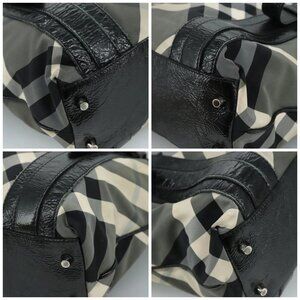 BURBERRY Nova Check Tote Bag PVC Enamel Gray Black Auth 111120