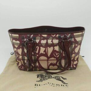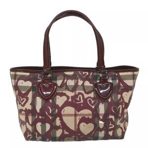BURBERRY Nova Check Tote Bag PVC Leather Red