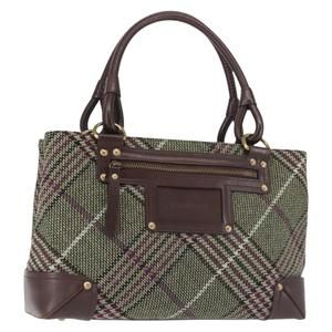 BURBERRY Nova Check Tote Bag Wool Leather Green Brown Auth BA5684