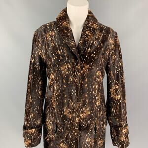 BURBERRY PRORSUM Pre-Fall 2013 Size 8 Brown & Tan Calf Hair Animal Print Coat