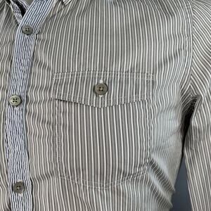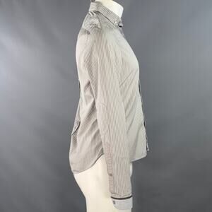 BURBERRY PRORSUM Size S White Grey Stripe Cotton One Pocket Long Sleeve Shirt