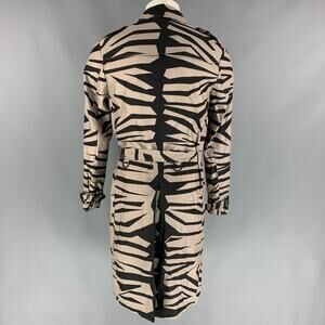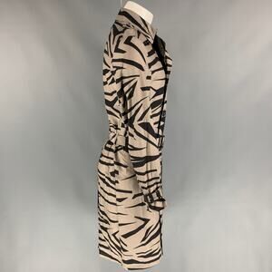 BURBERRY PRORSUM Size16 Size 38 Grey & Black Print Silk / Wool Belted Trenchcoat
