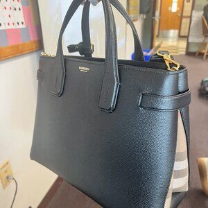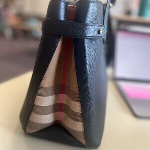 Authentic Leather Black Burberry purse with the signature Burberry design on the sides. Purse is large with 3 compartments and a middle zipper. It holds a lot of items and is great to dress it up or down. There is a large strap and also has smaller straps. This purse was lightly used and is in great condition.