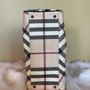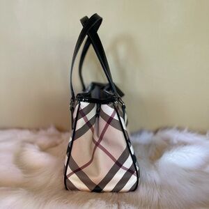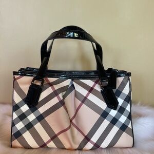BURBERRY Patent Trim Supernova Check Medium Melbury Tote Black