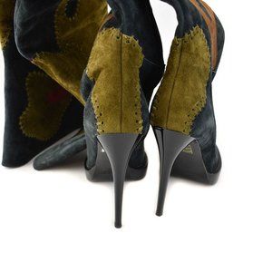 BURBERRY Prorsum: Navy Blue, Patchwork "Allison" Over The Knee Boots