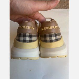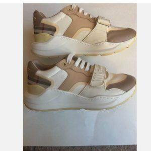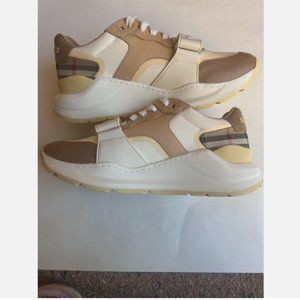 BURBERRY RAMSEY VANILLA CHECK LEATHER WOMENS LOW TOP SNEAKER 39.5 IT/ 9.5 US