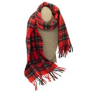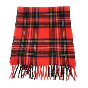 Description: Burberry Red Fringed Plaid Lambswool Scarf