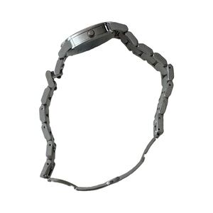 For sale is an elegant silver Burberry watch with a sleek design. The watch is in working condition, although it does show some signs of wear. It has a 34mm case size and features a fold-over clasp, along with quartz movement. Please note that the original packaging is not included. Additionally, be aware that the photos may not clearly represent the item due to lighting conditions.