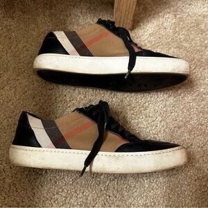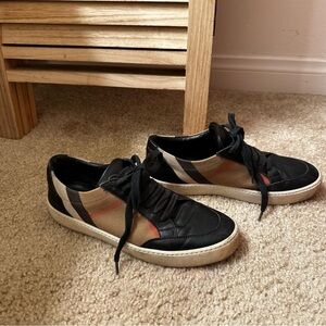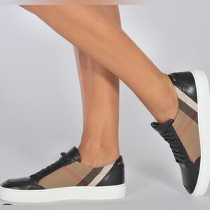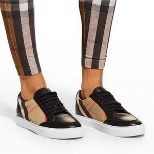BURBERRY Salmond Check Top Sneakers in Grainy Leather