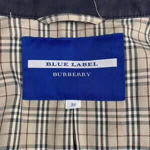 BURBERRY BLUE LABEL trenchcoat in a navy cotton blend fabric featuring a single breasted style with A-line skirt, and button closure with belt. Note: BURBERRY BLUE LABEL is a Japan-exclusive brand that caters to smaller sizing. Please double check measurements.