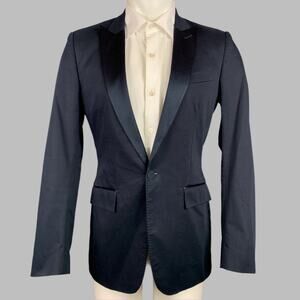 BURBERRY Size 36 Navy Cotton Blend Peak Lapel Tuxedo Sport Coat