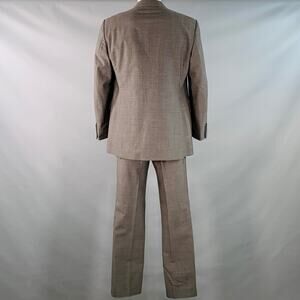 BURBERRY suit in a grey virgin wool with a full liner and includes a single breasted, double button sport coat with a notch lapel and matching flat front trousers. Made in Italy.