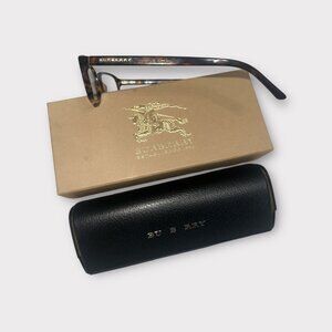 These authentic Burberry optical frames feature a sophisticated square silhouette in tortoise acetate. Complete with original case and presentation box, these Italian-made glasses showcase the brand's commitment to quality eyewear design.