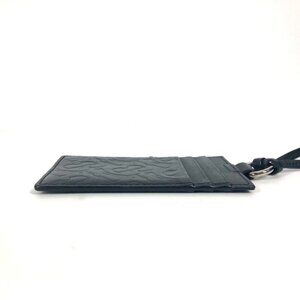 BURBERRY TB logo Neck straps, business card holder Card Case Leather Black