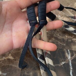 Vintage and Authentic Burberry London Canvas Horseferry Check Tote Bag,Used condition,repaired tote,beautiful soft fabric,nylon lining,blue label,long life left,I covered the handles with leather because the fabric tore,accept offers,free gift with each purchase,please review images closely,same day shipping.