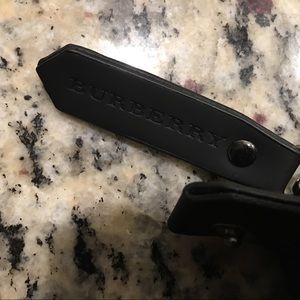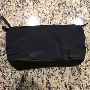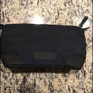 Brand New Burberry toiletry bag is perfect for every day essentials. Bag compresses flat when not in use and has snaps on both sides when in use. (See first pic). Gift with purchase. Approximate size 13"l x 6.5" h x 3.5" w. Dark blue with black trim.