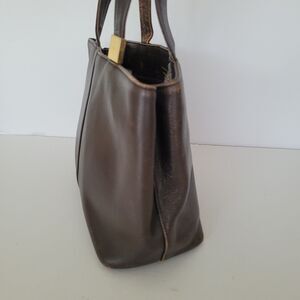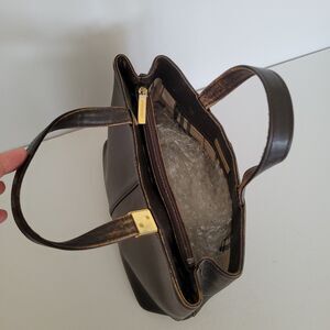 BURBERRY Tote Handbag Purse Bag Leather Medium Check Brown