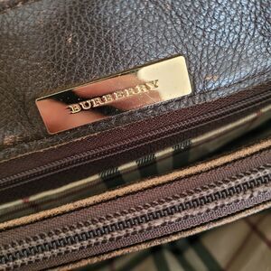 BURBERRY Tote Handbag Purse Bag Geniue Leather Medium Nova Check Lining Brown