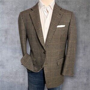 BURBERRY Vintage Mans Blazer Sport Coat Two Button Jacket 41R WOOL Brown Plaid