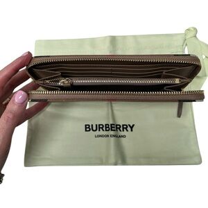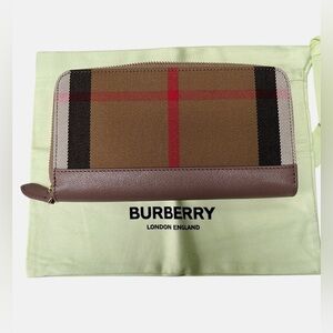 BURBERRY Wallet Large Zip Around Nova Check Grey Mink Leather Dust Bag Authentic